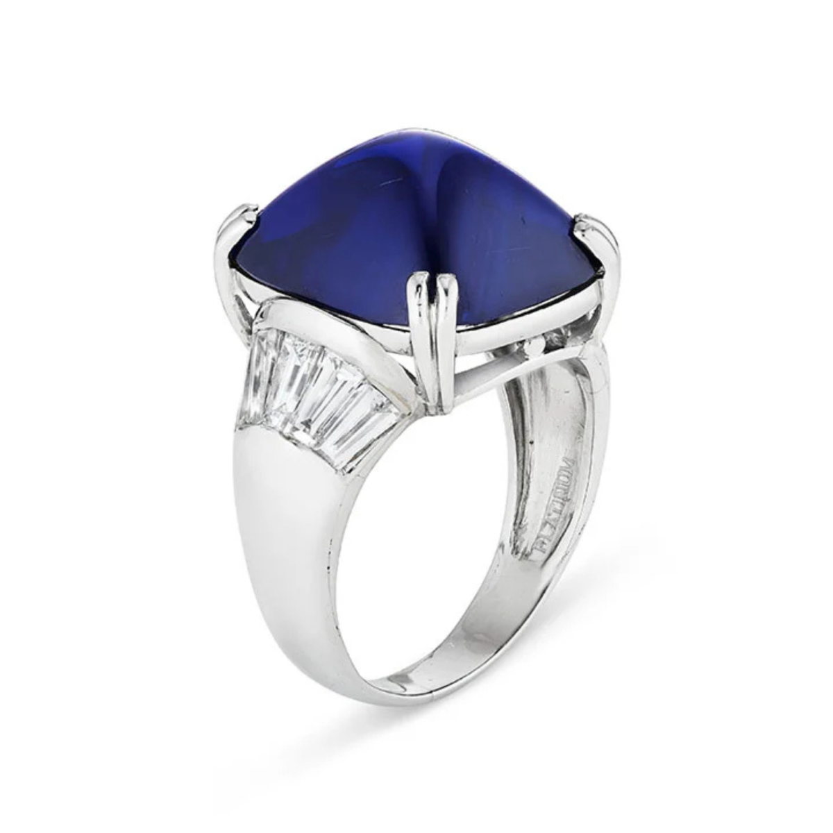 The ring, bearing a cushion-cut cabochon sapphire with tapered baguette-cut diamonds, is expected to lead the October 14 to 23 Jewels Online auction, according to Christie’s.