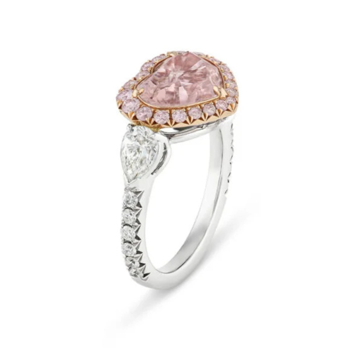 • Bearing a heart modified brilliant-cut, 3.06-carat, fancy-pink, SI1 diamond, this ring is anticipated to go for up to $400,000.