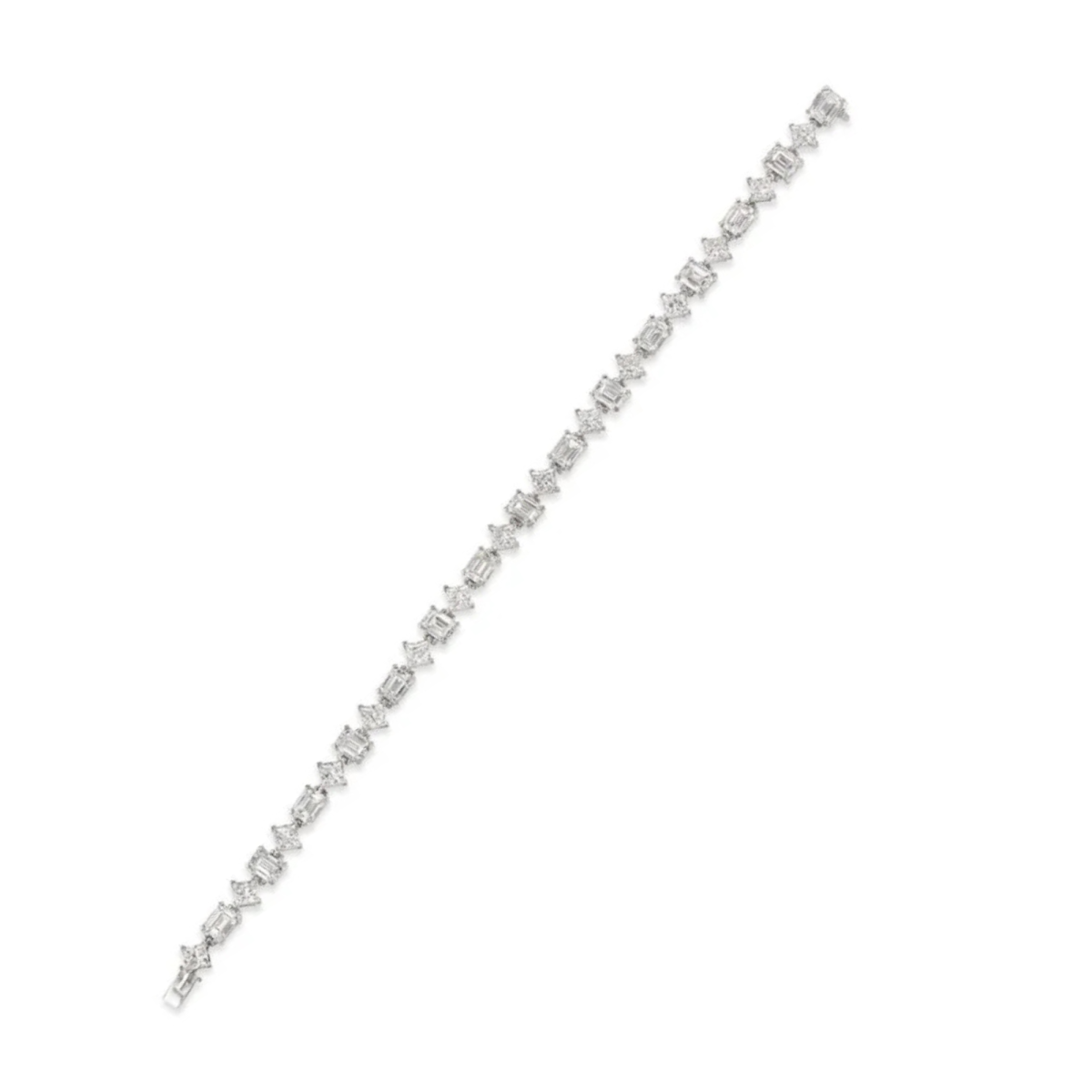 • This bracelet contains 24 square emerald-cut diamonds of 2 to 2.06 carats, G to I color and internally flawless to VS2 clarity. It carries a high estimate of $300,000.