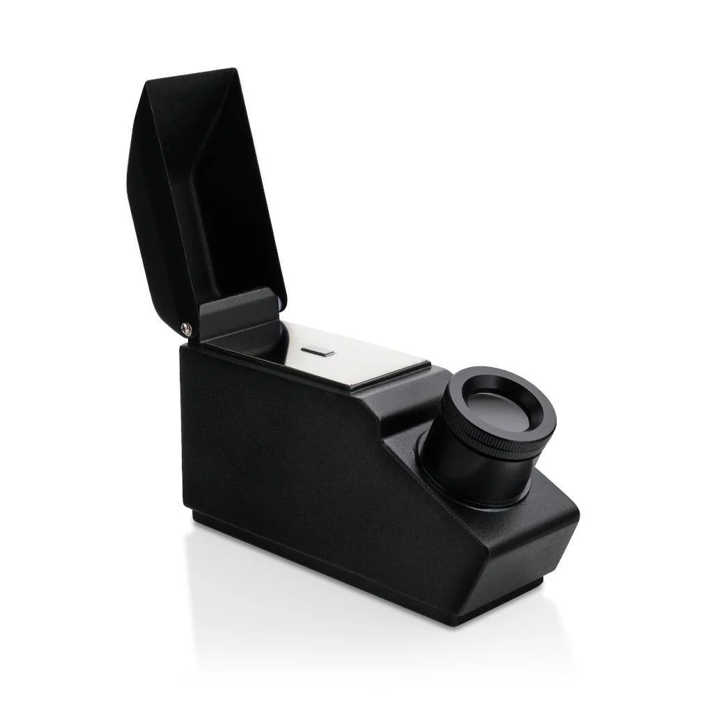 • How to use: Apply a drop of RI Liquid onto the prism. Place the gem's largest, flattest facet (the Table facet) onto the liquid. Look through the eyepiece to read the scale where the shadow edge (the line between the light and dark areas) appears.