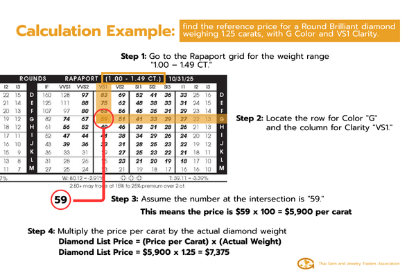 The Rapaport price grid is structured based on Carat Weight, Color, and Clarity. Reading the price requires a detailed understanding of its components: